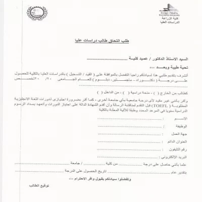 تقدم أكاديمية بحث لكم نموذج خطاب طلب اكمال دراسة بالمجان ويمكنكم التواصل لكتابة خطاب طلب اكمال دراسة في أي مكان تريده مع ضمان القبول.